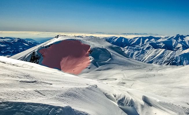 Для начала разберемся со временем образования снежного покрова. Первые снегопады в Гудаури начинаются уже в октябре, но снег задерживается лишь на северных экспозициях на высотах от 2800 и выше. Между снегопадами в этот период преобладает теплая погода, которая топит первый выпавший снег. Постепенно линия снега опускается до отметки 2800-2500, и в ноябре начинает формироваться снежный покров на горах Садзеле и Кудеби. Обычно за ноябрь приходит 2-3 снегопада. Ближе к январю ночная температура уже стабильно опускается ниже нуля на высоте около 2000, приходит чреда циклонов, которые и формируют снежную подложку на самом курорте. Уже при уровне слежавшегося снега 50 см возможно полноценное катание на курорте. Плато Гудаури – это травяные склоны с небольшим количеством камней (причем чем выше, тем камни больше!). Горы Садзеле и Кудеби состоят в основном из камней и разрушенных скал. Этот фактор стоит учитывать при фрирайде на курорте, особенно в начале сезона, так как количество камней под свежевыпавшим снегом может не только испортить снаряжение, но стать причиной травм. С точки зрения лавинной безопасности, каменная подложка способствует лучшему сцеплению снега с поверхностью. Снег сначала выравнивает каменную поверхность, цепляясь за неровности, и только спустя несколько снегопадов создает стабильную снежную подложку, пригодную для катания.