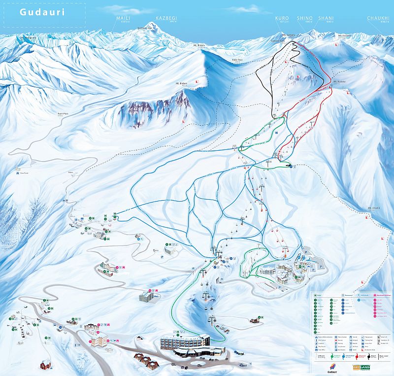Гудаури – горнолыжный курорт в непосредственной близости от Большого Кавказского хребта. Имеет южную экспозицию и со всех сторон окружен цепью гор, защищающих от сильных ветров. Это, безусловно, обеспечивает очень благоприятные условия для катания на горных лыжах и сноуборде.