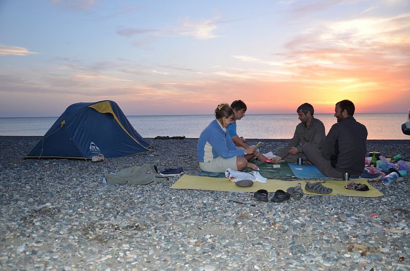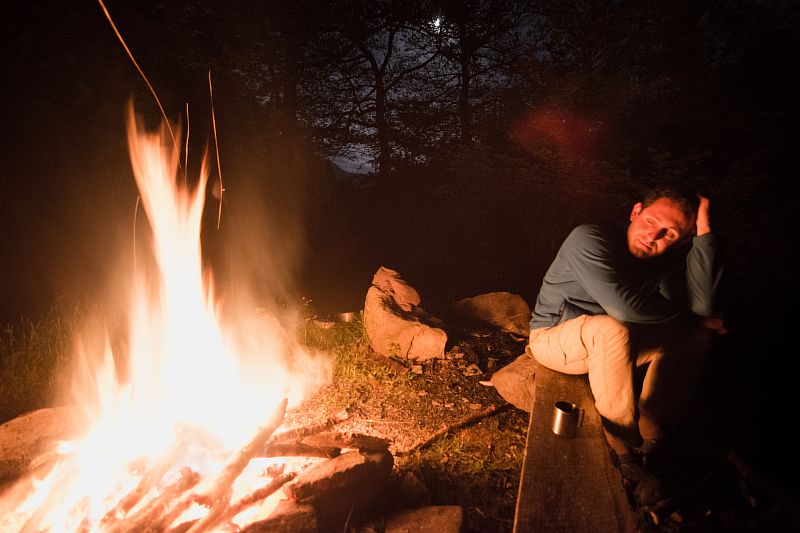 - возвращаемся к машине, ставим палаточный лагерь, достаем все свои винные, мясные, рыбные и овощные запасы, разжигаем большой костер и до самой ночи наслаждаемся компанией, природой, небом, шумом речки и шелестом листвы на деревьях.