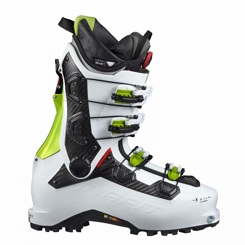 Подобные ботинки, позаимствованные у скитуристов-лыжников, представлены на рынке такими производителями, как Dynafit, LaSportiva и т.д. Выигрыш при использовании данных ботинок прежде всего в облегченной системе крепления, быстроте перехода с режима катания на режим ски-тура и наоборот, большей степени свободы при хождении и удобстве при прохождении траверсов. В этом сегменте представлено очень много моделей от разных брендов. Детальную информацию можно получить на сайте производителя.