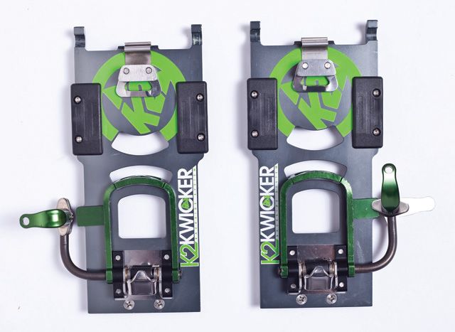 K2 Kwicker bindings – интересная разработка от К2. Платформы играют роль полноценных креплений. Фиксация происходит за счет специальных выступов на платформах, которые соединяются со специальными углублениями в подошве ботинка. Минус системы – в отсутствии хайбека и в совместимости исключительно с ботинками K2.